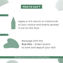 Allure Gua Sha Stone ( Jade quartz ) Hit the skin-gym to tone & firm your face with Gua Sha! Made with Aventurine, the ALLURE Green Quartz crystal loaded with positive energy and vitality, this Gua Sha significantly tones the face. Regular use of the Gua Sha results in improved skin elasticity, making your skin firm and supple. It is also excellent for de-puffing the skin. It stimulates lymphatic drainage, purifying your skin from within. Like your skin, your Gua Sha also deserves care. So, to increase its longevity, clean it once or twice a week to avoid the build-up of bacteria. You can simply clean it with cold water and gentle soap or face wash. You can either gently pat it dry or let it air dry by placing it on a clean soft cloth or towel. Avoid using hot water.