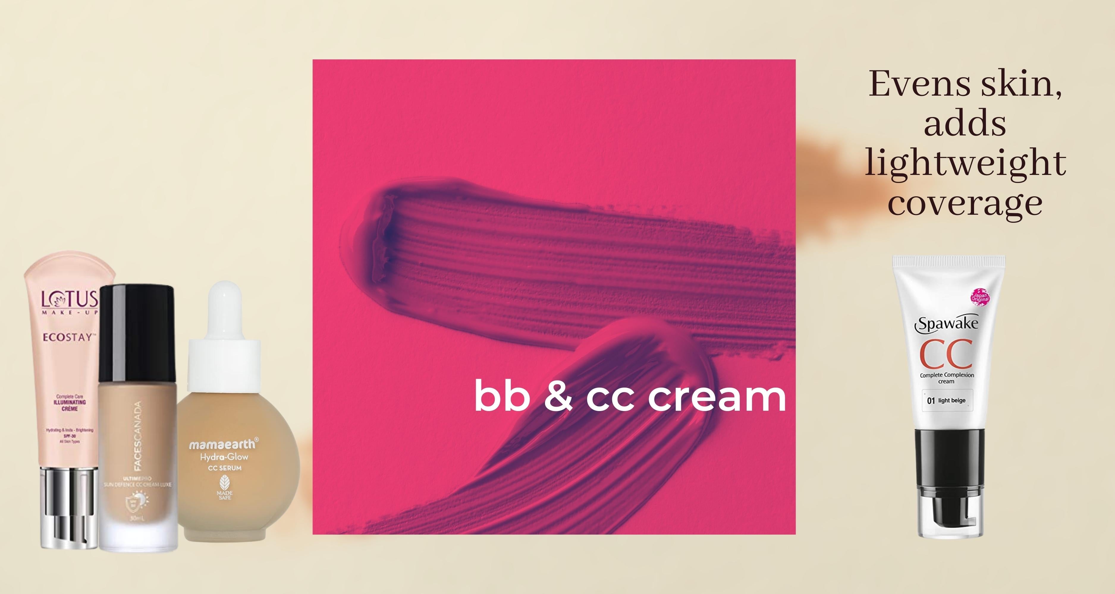 Both BB & CC creams are revolutionary products that give an even tone, without multiple layers of makeup. It is even pocket friendly as you can do full-coverage makeup with just one product. BB & CC cream makes you look glowing & radiant but also takes care of your skin while making you look pretty with its formulation of skin care.