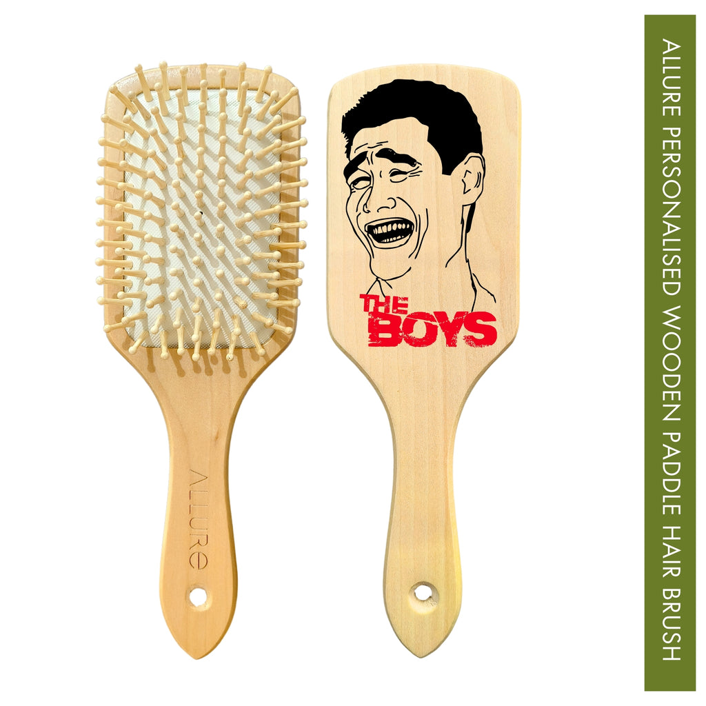Allure Personalised wooden paddle hair brush with the boys print is crafted from 100% natural wood, making it durable and good for your hair Its ball headed wooden bristles and high quality paddle with air circulation makes it ...