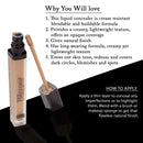 - Liquid concealer that helps cover blemishes, dark spots, redness for an even complexion
