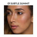 - 01 Subtle Summit (L to R): Taupe Topper (Cool-toned Brown Bronzer), Champagne Champion (Champagne Gold Highlighter) and Peach Peak (Soft Peach Pink Blush)