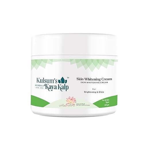 Kulsum's Kaya Kalp Herbals Skin Whitening Cream is packed with pearl powder, lotus extract, almond oil, aloe vera, and wheat germ oil. It includes amino acids & flavonoids ...