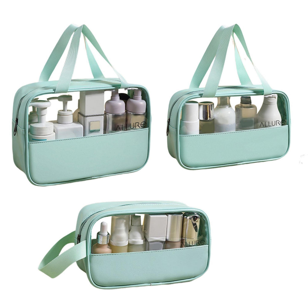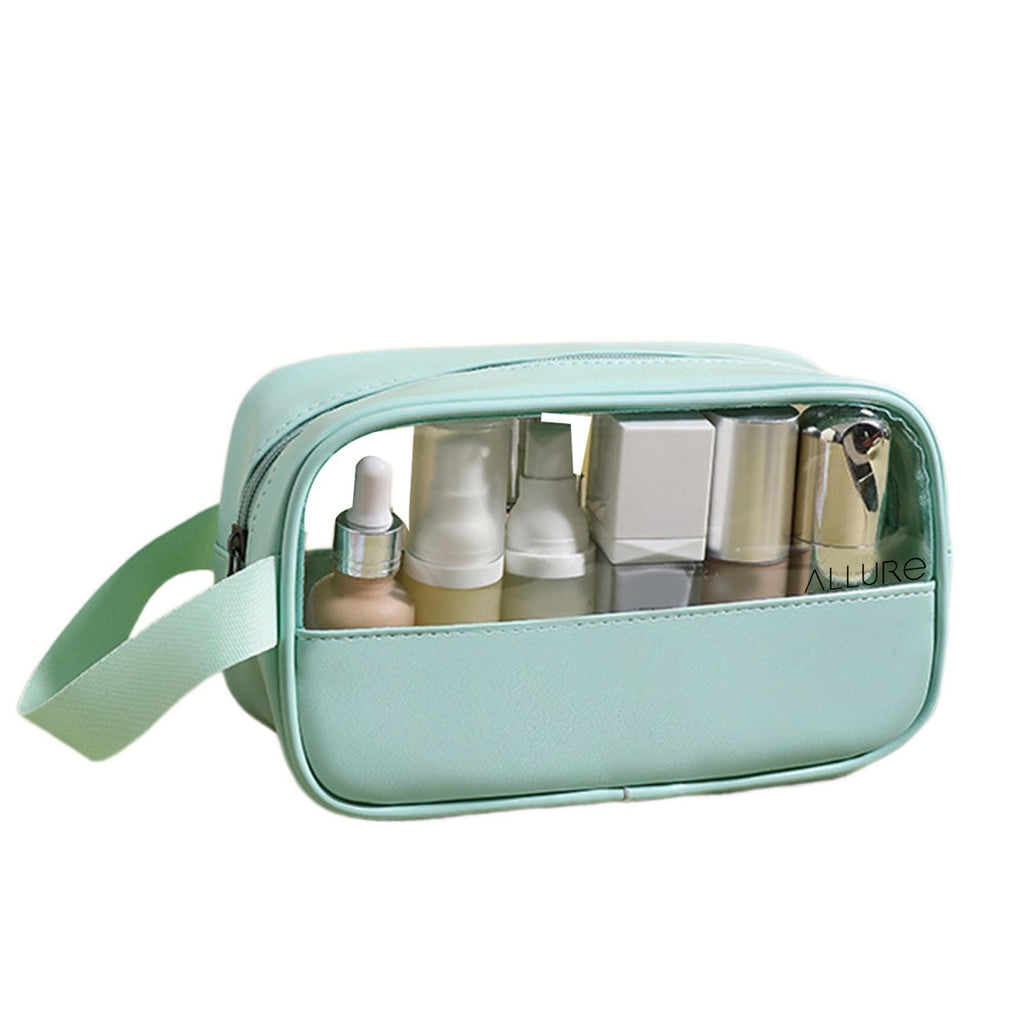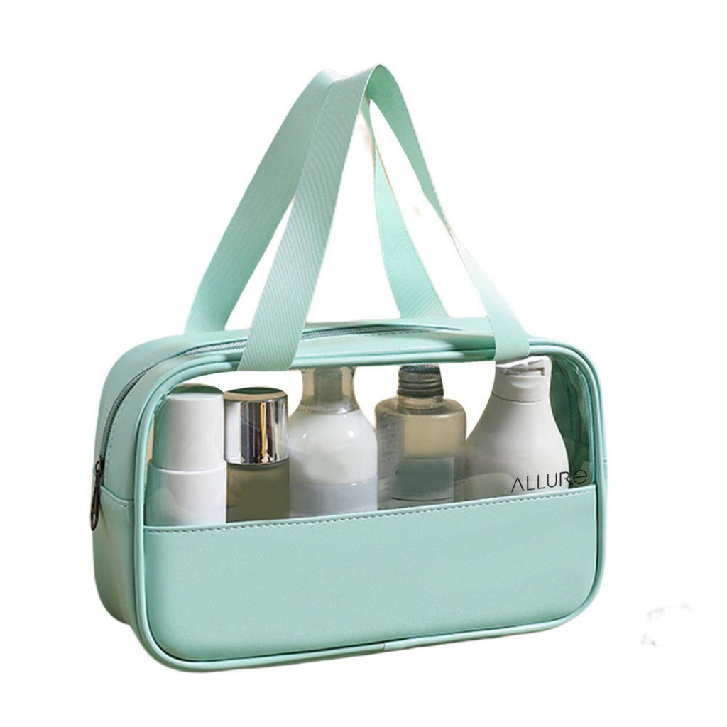 Travel in style with the Allure Transparent Toiletry Bag. This blue travel cosmetic pouch features a transparent design for easy visibility and quick access to your essentials. Perfect for storing cosmetics, toiletries, jewelry...
