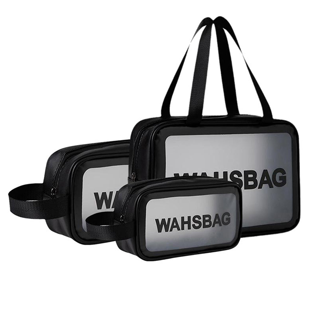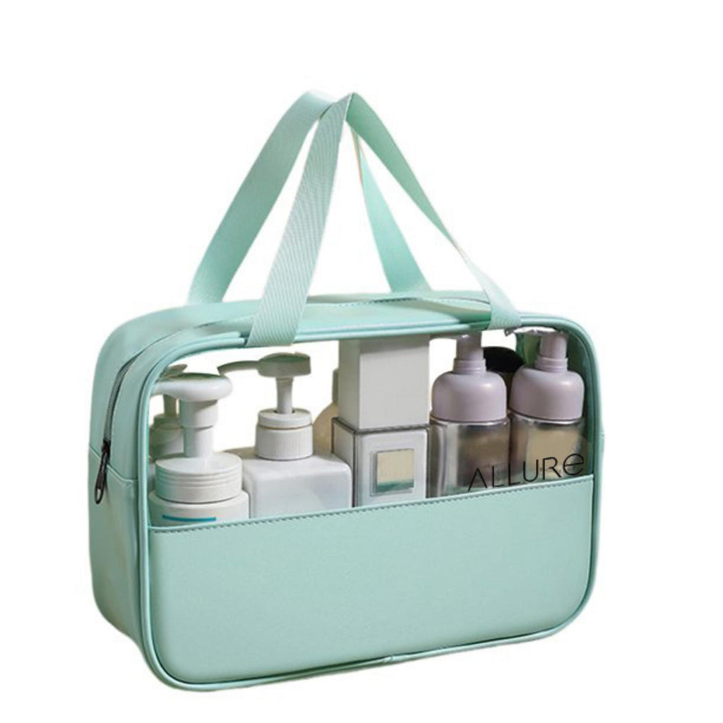 Allure Transparent Toiletry Travel Bag with White Handles – Spacious, Waterproof & Travel-Friendly