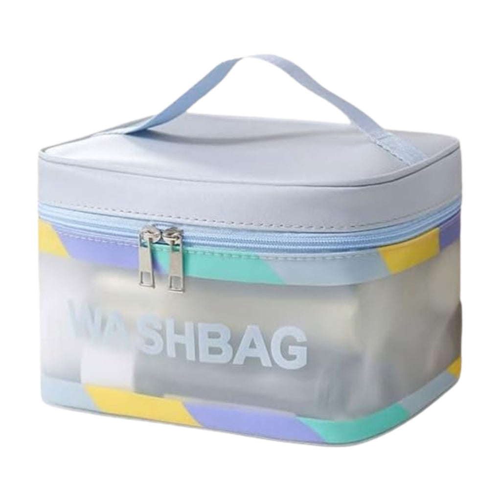 Allure Transparent Toiletry Travel Bag with White Handles – Spacious, Waterproof & Travel-FriendlyKeep your beauty and skincare essentials perfectly organized with the Allure Transparent Blue Toiletry Travel Bag, designed f...