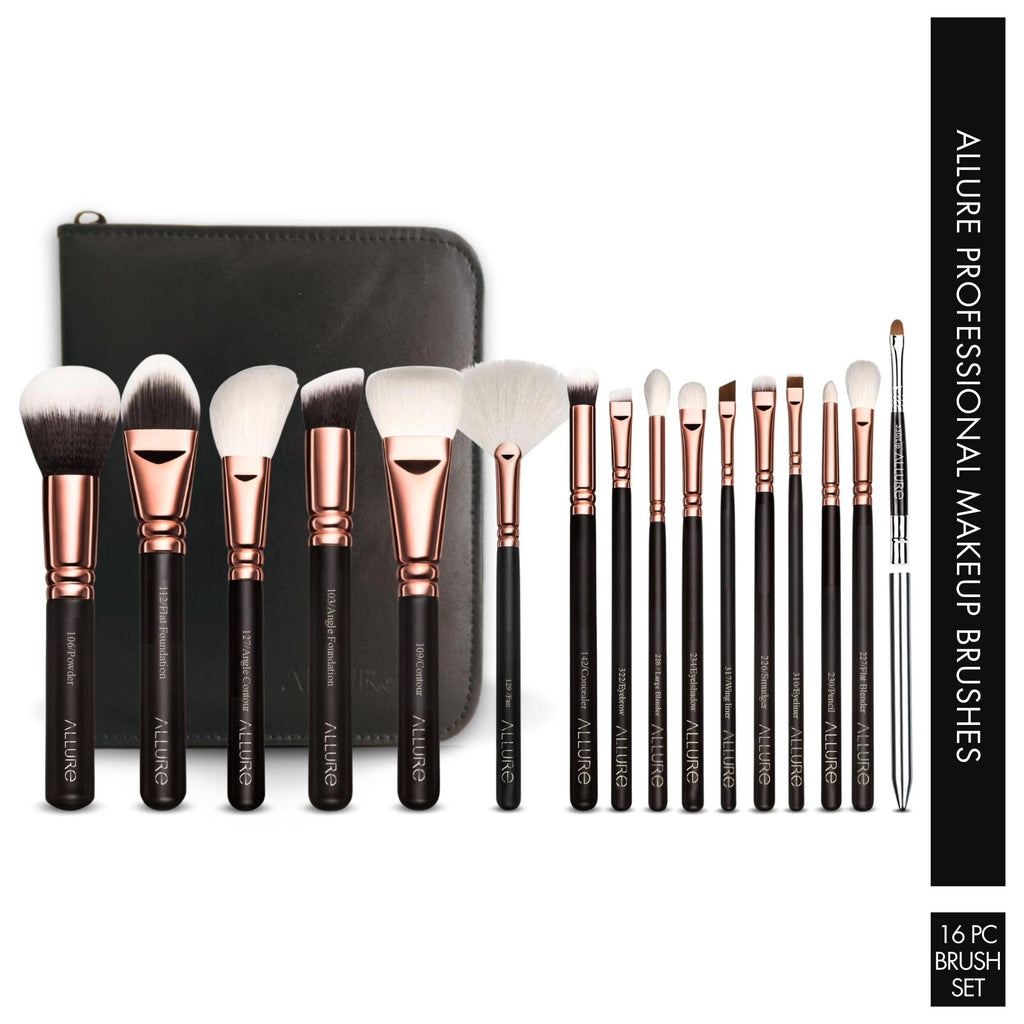 Allure Rose Gold Brushes -RGK 16 Set of 16 Inspired by the dazzling fusion of black and silver, Allure presents RGK-16 Makeup Brush Set which is truly a masterpiece.