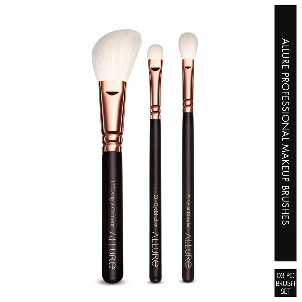 Allure Essential Trio Professional Makeup Brush Set With Travel Pouch for everyday use and a multi-utility travel pouch. This essential set is perfect for everyone from beginners to pro. Handmade brushes crafted with precision....