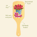 Allure Personalised wooden paddle hair brush with bouquet print is crafted from 100% natural wood, making it durable and good for your hair Its ball headed wooden bristles and high quality paddle with air circulation makes it great for everyday use. Also it is a sustainable choice for both your hair and the environment. This eco-conscious brush is designed with rounded bristle ends that gently detangle, reducing hair breakage during use. But it's more than a hairbrush; it's a personalised hair care experience.