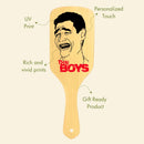Allure Personalised wooden paddle hair brush with the boys print is crafted from 100% natural wood, making it durable and good for your hair Its ball headed wooden bristles and high quality paddle with air circulation makes it great for everyday use. Also it is a sustainable choice for both your hair and the environment. This eco-conscious brush is designed with rounded bristle ends that gently detangle, reducing hair breakage during use. But it's more than a hairbrush; it's a personalised hair care experience.