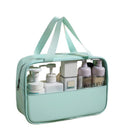 Allure Toiletry Bag large Green is made of durable PVC material and water resistant so it’s protecting your toiletries and makeup from water or rain. Travel wash bag strong abrasion resistance, waterproof, easy to clean, portable, anti-corrosion, and strong. The clear bag keeps everything organized and clear at a glance, easily find what you are looking for without wasting time, good for use at home and traveling. Along with a large opening on top make it easy to pack. You can carry this bag anywhere on travel, business trip, vacation, overnight stay, weekend vacationer, in hotels, weddings, or vanity at home. The clear cosmetic travel bag is great for storing all your liquids, shampoo conditioner, lotion, gel, cream, cosmetics, makeup, towels, oil, and other toiletries. Not only can be used as a travel cosmetic case, but the makeup bag is also a wash bag, and a toiletry bag, suitable for all kinds of daily or travel use, and will bring great convenience to your life. It is also a great helper for house moving.