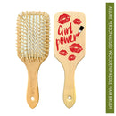 Allure Personalised wooden paddle hair brush with girl power print is crafted from 100% natural wood, making it durable and good for your hair Its ball headed wooden bristles and high quality paddle with air circulation makes it great for everyday use. Also it is a sustainable choice for both your hair and the environment. This eco-conscious brush is designed with rounded bristle ends that gently detangle, reducing hair breakage during use. But it's more than a hairbrush; it's a personalised hair care experience.
