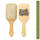 Allure Personalised wooden paddle hair brush with bride squad print is crafted from 100% natural wood, making it durable and good for your hair Its ball headed wooden bristles and high quality paddle with air circulation makes it great for everyday use. Also it is a sustainable choice for both your hair and the environment. This eco-conscious brush is designed with rounded bristle ends that gently detangle, reducing hair breakage during use. But it's more than a hairbrush; it's a personalised hair care experience.