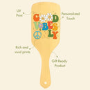 Allure Personalised wooden paddle hair brush with good vibes print is crafted from 100% natural wood, making it durable and good for your hair Its ball headed wooden bristles and high quality paddle with air circulation makes it great for everyday use. Also it is a sustainable choice for both your hair and the environment. This eco-conscious brush is designed with rounded bristle ends that gently detangle, reducing hair breakage during use. But it's more than a hairbrush; it's a personalised hair care experience.