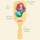 Allure Personalised wooden paddle hair brush with mermaid print is crafted from 100% natural wood, making it durable and good for your hair Its ball headed wooden bristles and high quality paddle with air circulation makes it great for everyday use. Also it is a sustainable choice for both your hair and the environment. This eco-conscious brush is designed with rounded bristle ends that gently detangle, reducing hair breakage during use. But it's more than a hairbrush; it's a personalised hair care experience.