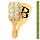 Allure Personalised wooden paddle hair brush with letter B is crafted from 100% natural wood, making it durable and good for your hair Its ball headed wooden bristles and high quality paddle with air circulation makes it great for everyday use. Also it is a sustainable choice for both your hair and the environment. This eco-conscious brush is designed with rounded bristle ends that gently detangle, reducing hair breakage during use. But it's more than a hairbrush; it's a personalised hair care experience.