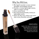 - Liquid concealer that helps cover blemishes, dark spots, redness for an even complexion