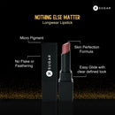 The lipstick of your fantasies is finally here. Get ready to applaud utter gorgeousness with Sugar Nothing Else Matter Longwear Lipstick. Sugar brings you the rich experience of a lip colour that has a smooth application, intense water-resistance, premium opaque matte finish that doesn't feel heavy on the lips but provides them with plush comfortable wear. Long-lasting, these 11 extraordinary shades have been curated to complement every mood. For the woman who likes to live her life on her own terms and who doesn't get bothered by the world even a tad bit - This. Is. It! And, nothing else matters.