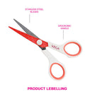 Vega D'zyner Scissor is a small compact, premium quality stainless steel multi-purpose pair of scissors that is patterned with unique colours and prints. The sleek handle gives comfort and control for precise and easy cutting. It can be used at home, office or even while traveling.