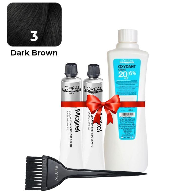 Loreal Professional Hair Color 50G 3No. Dark Brown + Oxydant Developer (1000Ml) Combo