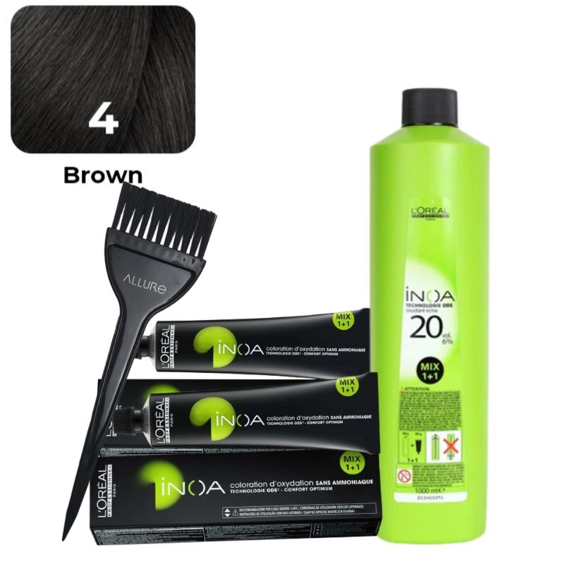 Loreal Inoa Ammonia Free Hair Color 60G 4 Brown +Developer 1000ml Combo