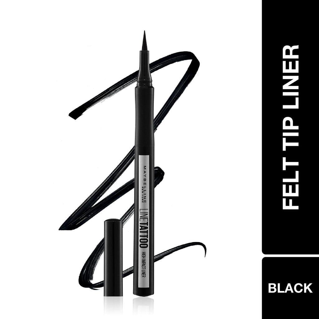 Maybelline new York's Line Tattoo High Impact Liner has dark black intensity of tattoo that is water resistant, smuge resistant and lasts upto 36 hours. It's easy felt tip pen glides smoothly on your lids for quick application...