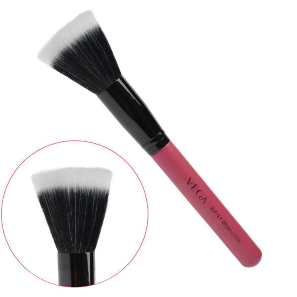 Ideal for all over application and blending of foundation, powder and mineral-based products, the Vega buffer brush ensures flawless and even makeup application. This flat bristle brush is densely packed, perfect for blending b...