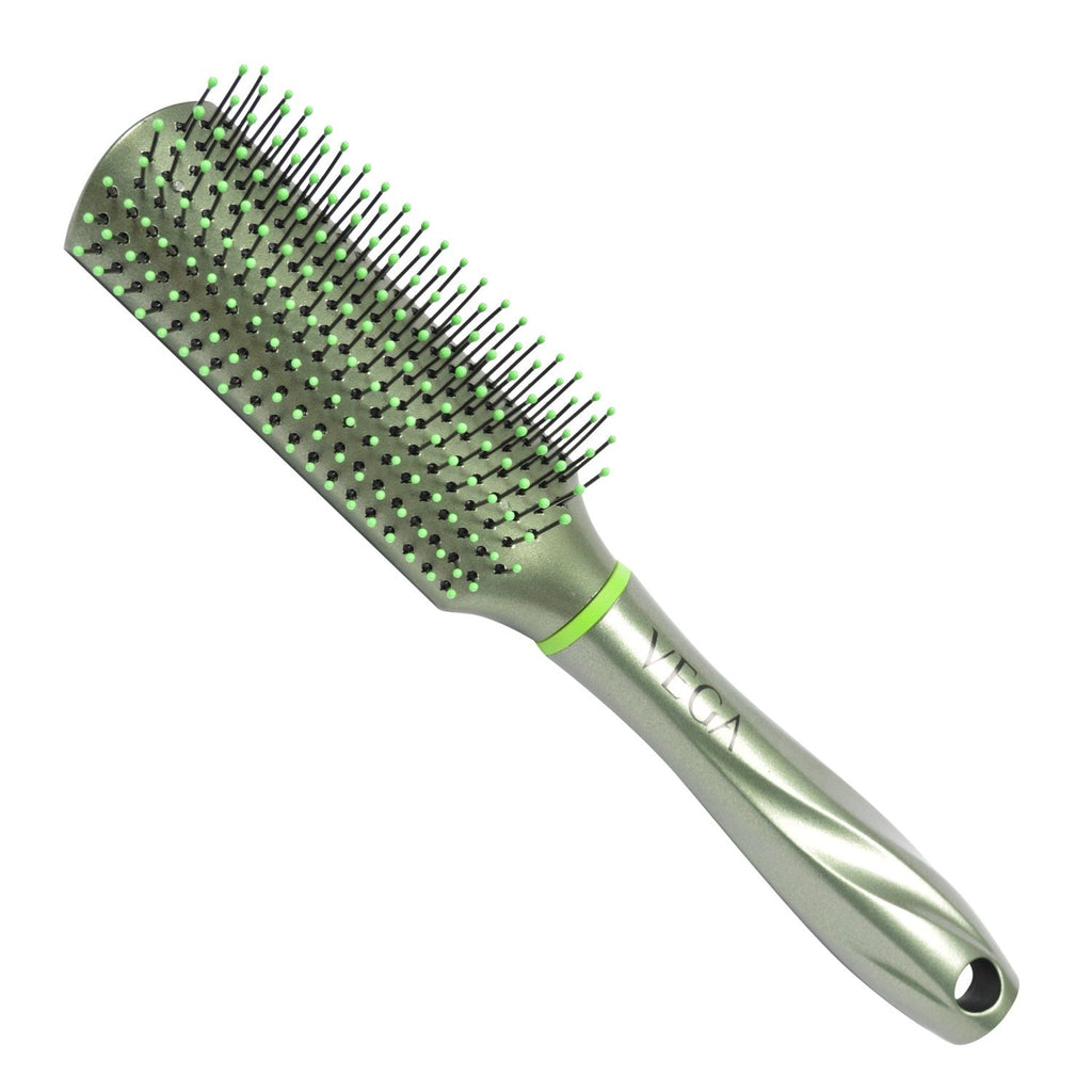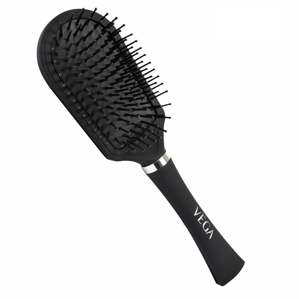 Vega Paddle Brush is ideal for grooming, straightening, smoothing and adding shine to hair. Nylon bristles with stay-put ball tips easily penetrate and stimulate the hair, massage the scalp and also help reduce snags and tangle...