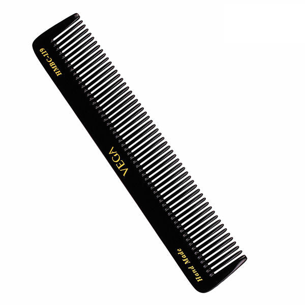 Vega General Grooming Comb is made from cellulose acetate which does not create static in hair due to its non-petroleum based material, derived from natural plants. It has?smooth rounded teeth which do not hurt the scalp while ...