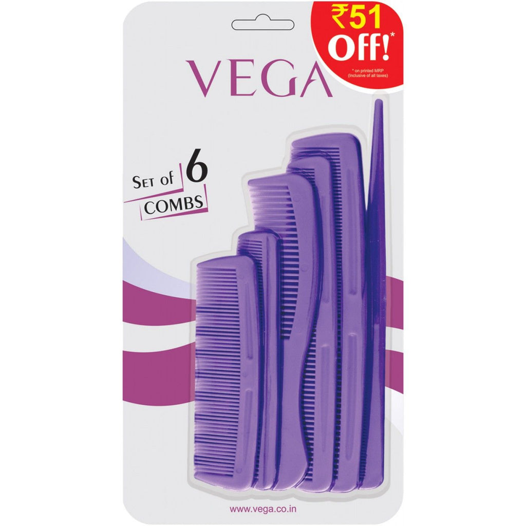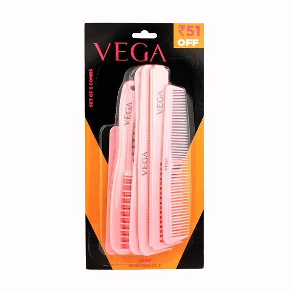 Vega presents a set of 6 essential ombs that meet all the requirements for daily hair styling and grooming. The smooth tips of combs gently massage the scalp and help in detangling the hair and preventing it from damage. The ha...