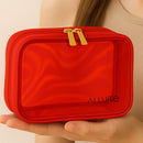 Stay organized in style with the Allure Small Red Holographic Makeup Pouch. This spacious, travel-friendly bag is designed to store all your essentials — makeup, skincare, toiletries, brushes, or accessories — in one place.