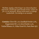 Lavang (Syzygium aromaticum), Pudina (Mentha piperata), Gandhak (Sulphur), Kikar gond (Acacia Arabia), Yashad (yashad bhasma), Geru (Red ochre), Paste base Q.S.