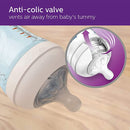 Innovative twin valve design reduces colic and discomfort by venting air into the bottle and not baby's tummy.