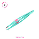 - Tweezer: This fine quality slant tip tweezer comes with a soft touch small rubber grip which helps you to pluck out hair with ease.