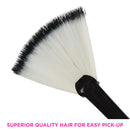 Vega fan makeup brush can be used for expertly finishing off your makeup look. This sleek makeup brush allows for even and soft definition, making it an ideal tool for gently sweeping highlighter or bronzing powder. The Vega fan makeup brush can also be used to dust away excess product like eye makeup fallout, without leaving traces in its wake. Use this unique shaped makeup brush to blend out harsh lines, create a softer look, this one is perfect for blush and bronzer application as well as contouring.