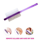 This long lasting pumice stone/ brush with handle effectively removes hard rough, dry skin and calluses on hands, feet, knees and elbows.