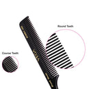 Vega Tail Comb is made from cellulose acetate which does not create static in hair due to its non-petroleum based material, derived from natural plants. It has?smooth rounded teeth which do not hurt the scalp while combing and helps reducing hair fall. The smooth rounded teeth do not break while grooming, are gentle on the scalp and ideal for sensitive skin.