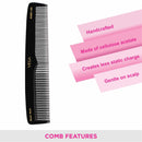 Vega Graduated Black Dressing Comb is made from cellulose acetate which does not create static in hair due to its non-petroleum based material, derived from natural plants. It has?smooth rounded teeth which do not hurt the scalp while combing and helps reducing hair fall. The smooth rounded teeth do not break while grooming, are gentle on the scalp and ideal for sensitive skin.