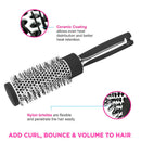 - Brush helps create waves and curls while adding shine