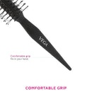Vega Round Brush is ideal for is ideal for adding body and volume and smoothing and curling hair. With reinforced stay-put ball tips and nylon bristles, it has an excellent grip allowing for easier styling and is suitable for all hair lengths.