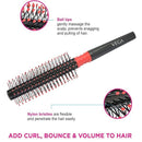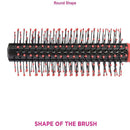 - Round brush gives quick curl, adds volume and smoothens the hair shaft