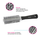 - The nylon bristles penetrate the hair while the boar bristles polish the shaft.