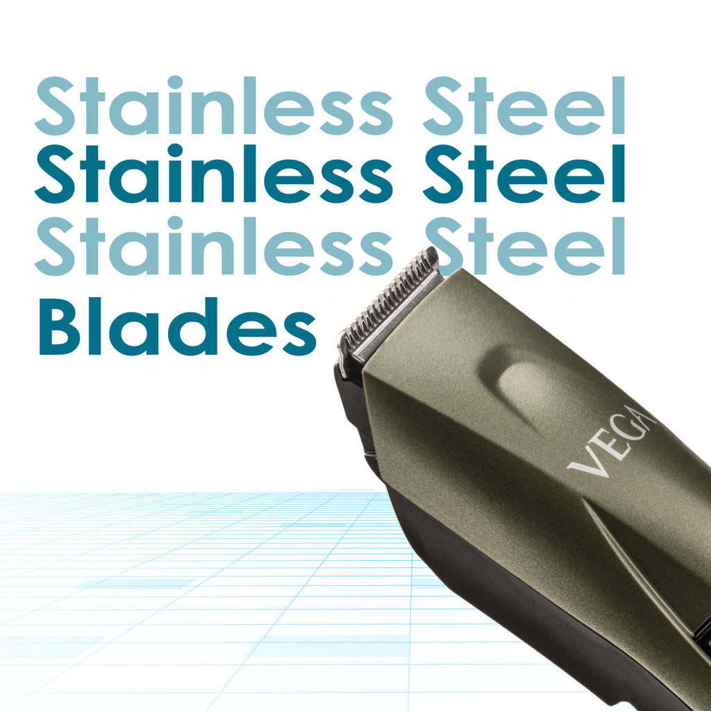 Now switch to effortless precision with the power-packed Vega Power Series P-1 Beard Trimmer. This trimmer comes with ultra-sharp stainless steel blades so you can easily cut through, long or thick hair without pulling and tugg...