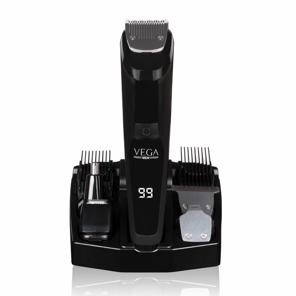 Groom yourself easily and effortlessly with VEGA Men 9-in-1 All-Ready Multi-Grooming Set. This 9-in-1 set comes with the choicest of attachments such as a T-blade, precision trimmer, design trimmer, shaver and nose trimmer to p...
