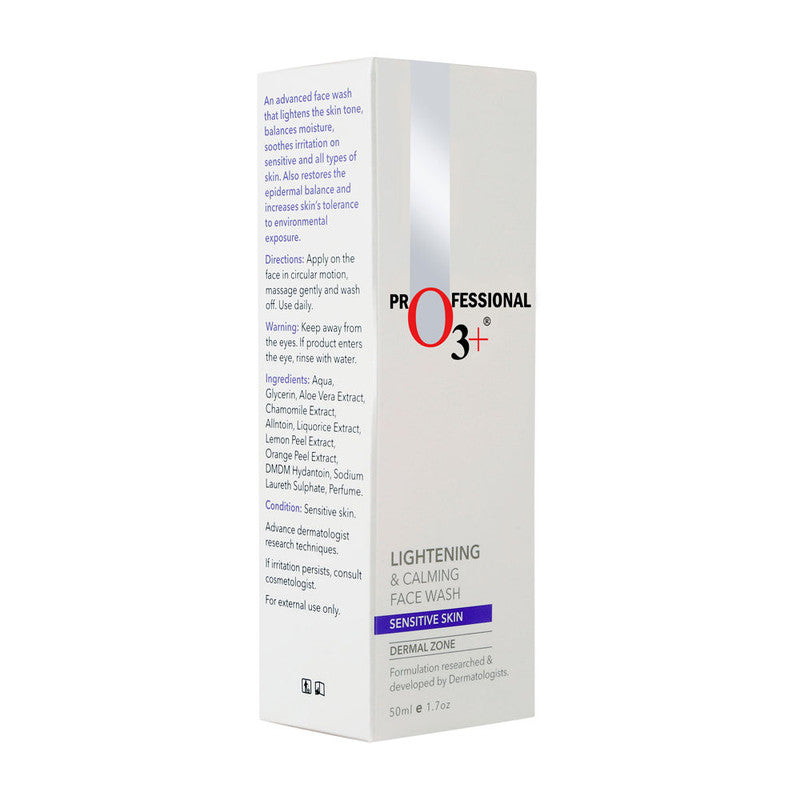 The O3+ advanced Lightening & Calming face wash lightens, balances moisture, soothes irritation on sensitive and all types of skin. A light foaming, gentle face wash that lightens, balances moisture, soothes irritation on s...