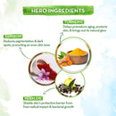 - Brightens skin tone: Helps remove tan and improve complexion with saffron. Turmeric is a natural healer that revives by bringing out skin's natural glow.