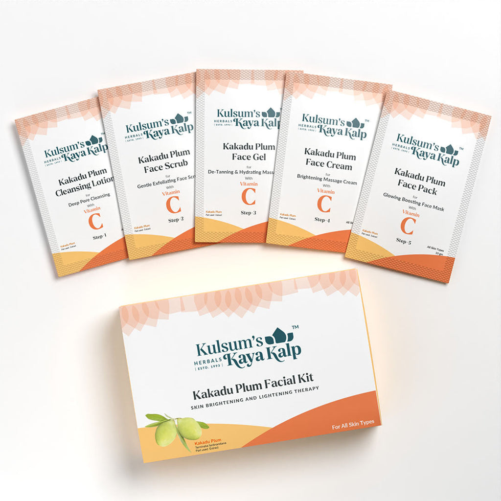 Soak in the goodness of Vitamin C with Kulsum’s Kaya Kalp Herbals Kakadu Plum Facial Kit contains a set of 5 skincare products which include a cleansing lotion, face scrub, face gel...