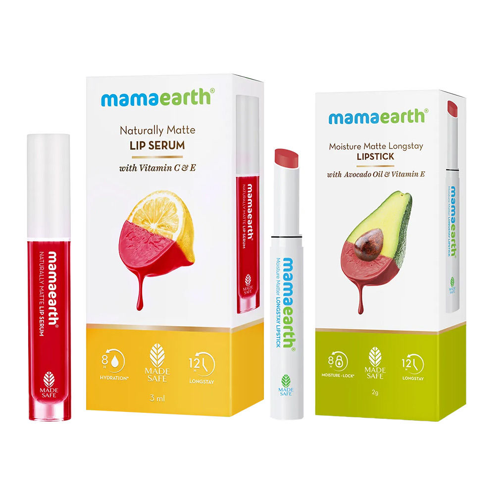 Mamaearth Moisture Matte Longstay Lipstick-Raspberry Scarlet + Naturally Matte Lip Serum-Beet it Red