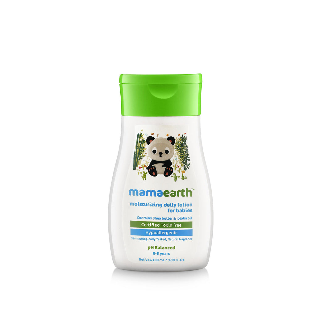 Your baby's skin needs to be moisturized daily so that it remains soft and nourished. Mamaearth Daily Moisturizing lotion helps keep your little one's skin velvety soft and healthy. Ingredients such as cocoa butter and shea but...