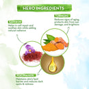 - Gives natural glow: Revive your skin and get glowing with age-old traditional ingredients in this serum. Turmeric makes skin glow, and saffron repairs cells, making the skin supple. Dullness and uneven skin tone doesn't stand a chance.