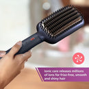 Philips Heated Straightening Brush BHH885/10 will give you naturally straight hair in 5 minutes. Designed with SilkProtect Technology, ionic care and ceramic argan oil infused bristles, this straightening brush is a great tool that will leave you with naturally straight, beautiful and shiny hair in just 5 minutes. Philips SilkProtect technology with ionic care system works together with the triple bristle design for healthy looking, frizz free hair.